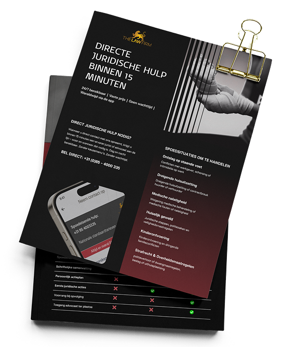 The Law Firm biedt directe 24/7 noodhulp – zonder wachttijd, zonder keuzemenu’s. U krijgt binnen 15 minuten een ervaren jurist aan de lijn, waar en wanneer het nodig is. Dag en nacht, ook in het weekend of op feestdagen. Wij schakelen direct, analyseren uw situatie en zetten de juiste stappen in beweging. Via onze beveiligde app volgt u alles real-time: chatten, videobellen, documenten delen en updates ontvangen – veilig, snel en overzichtelijk.