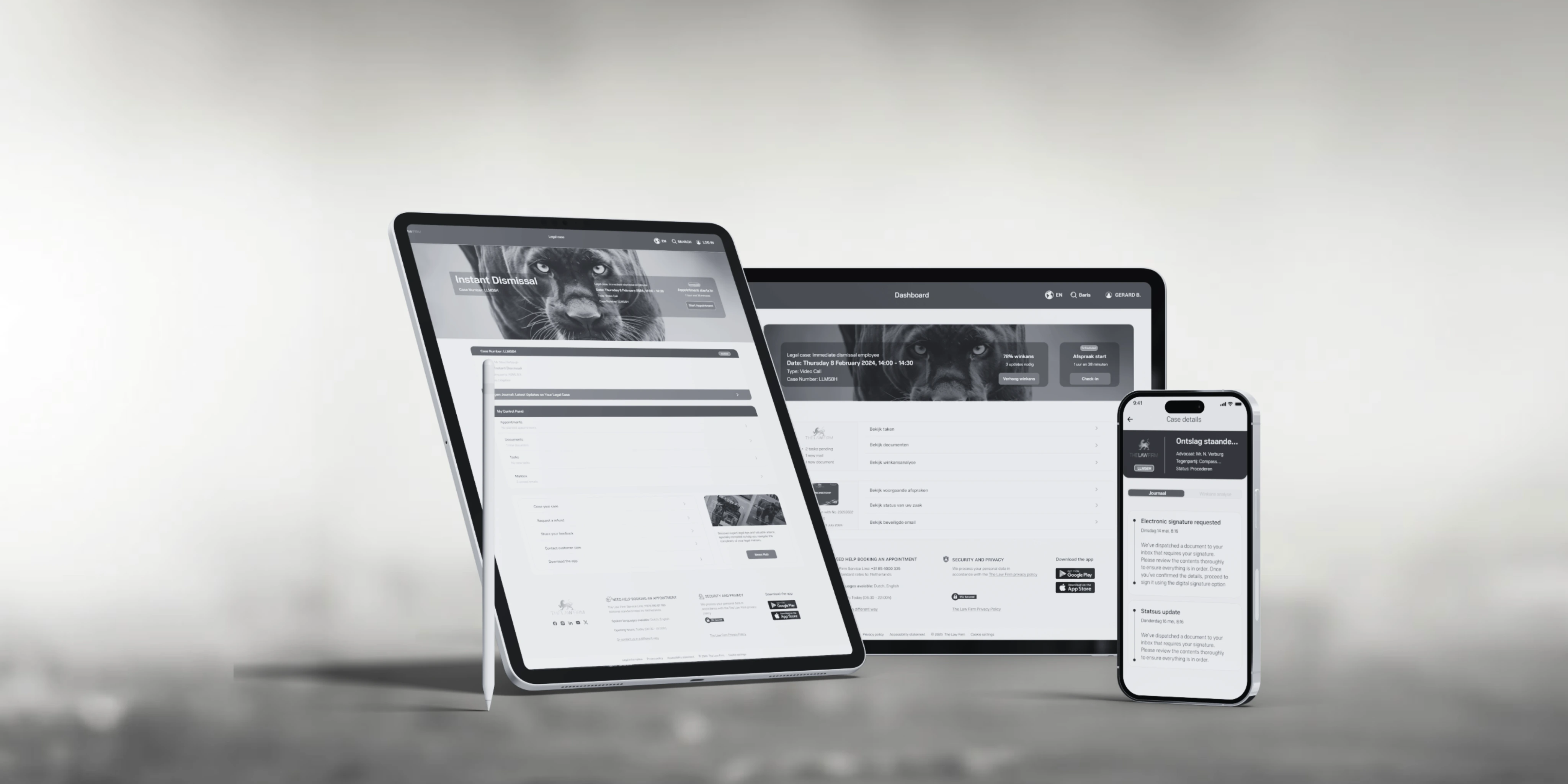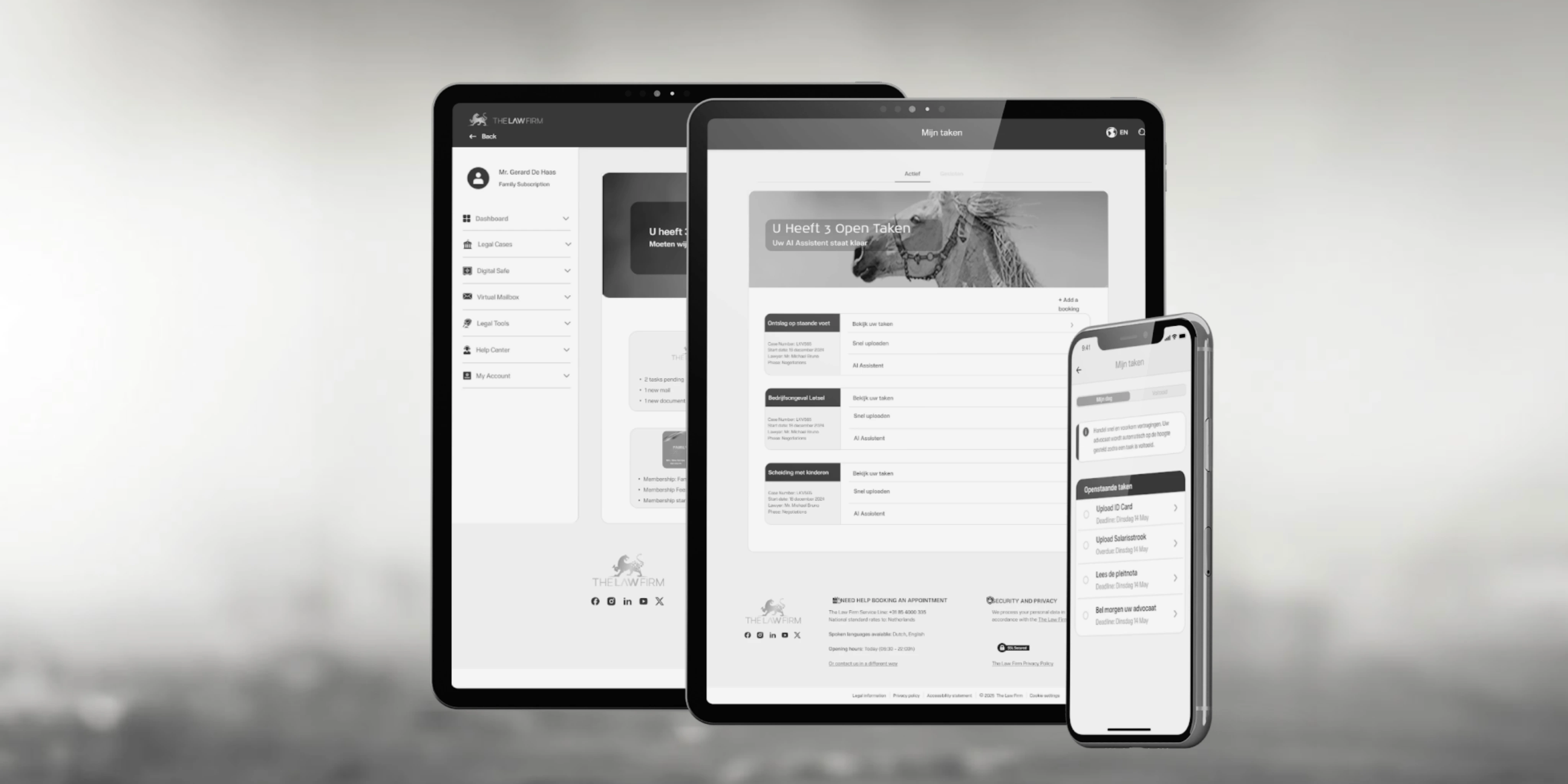 Met de The Law Firm App regelt u al uw juridische zaken op één centrale plek. U plant afspraken, verstuurt berichten, opent documenten en volgt de voortgang van uw zaak – waar en wanneer u maar wilt.
